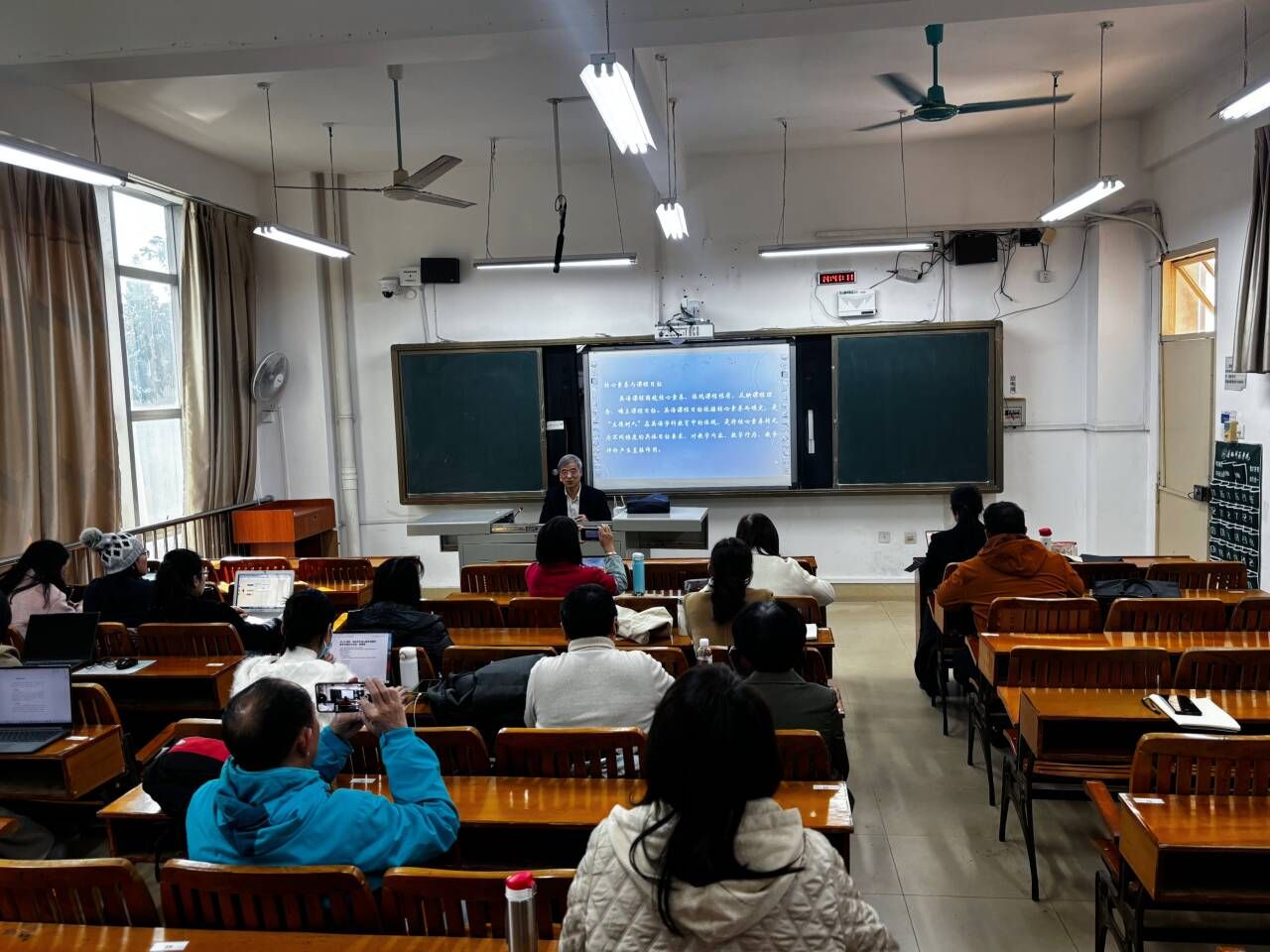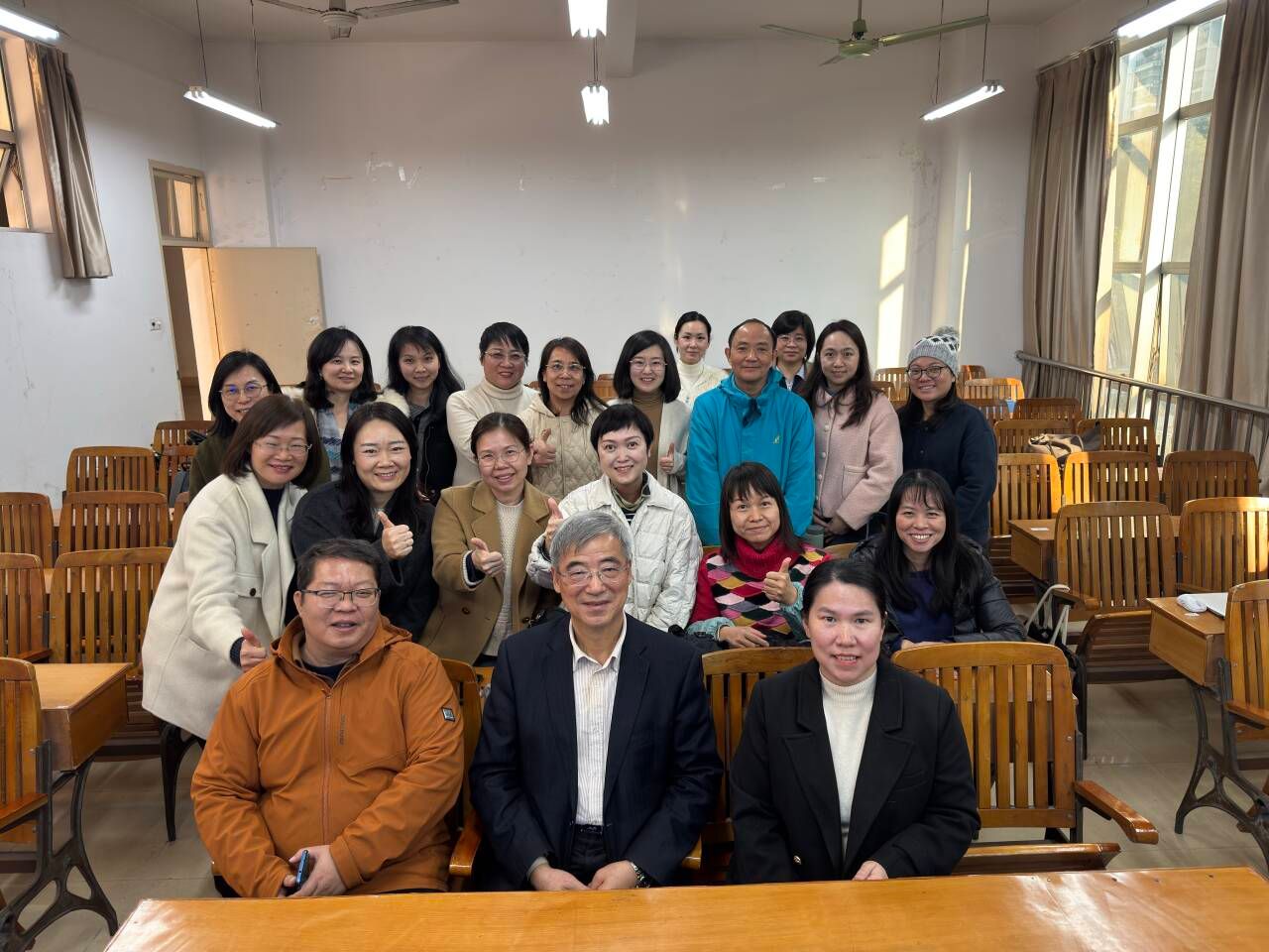 1月9日下午,南宁师范大学明秀校区迎来了一场英语教育界的学术盛宴。教育部高中及义务教育英语课程标准修订组组长、上海外国语大学博士生导师梅德明教授应邀来访,为外国语学院教师开展了一场题为“指向学生核心素养发展的教学评理念与实践”的专题学术讲座。本次讲座由外国语学院副院长蒙岚教授主持,梅教授与外国语学院教师们共同探讨了英语教育革新的前沿方向与实践路径。