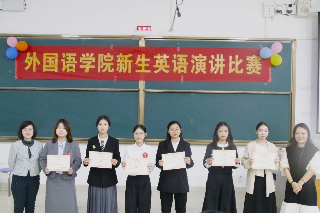 11月11日下午,外国语学院在武鸣校区一号教学楼215教室顺利举办2025级新生英语演讲比赛。肖西西、夏莉、王珏、石亿、林绍丽五位老师受邀担任评委,学院党委刘晖晖副书记、学工办蔡梓晴、黄慧梅、黄恬、王倩、张新举等老师出席此次活动;部分团副主席团成员及2025级全体新生共同参与。