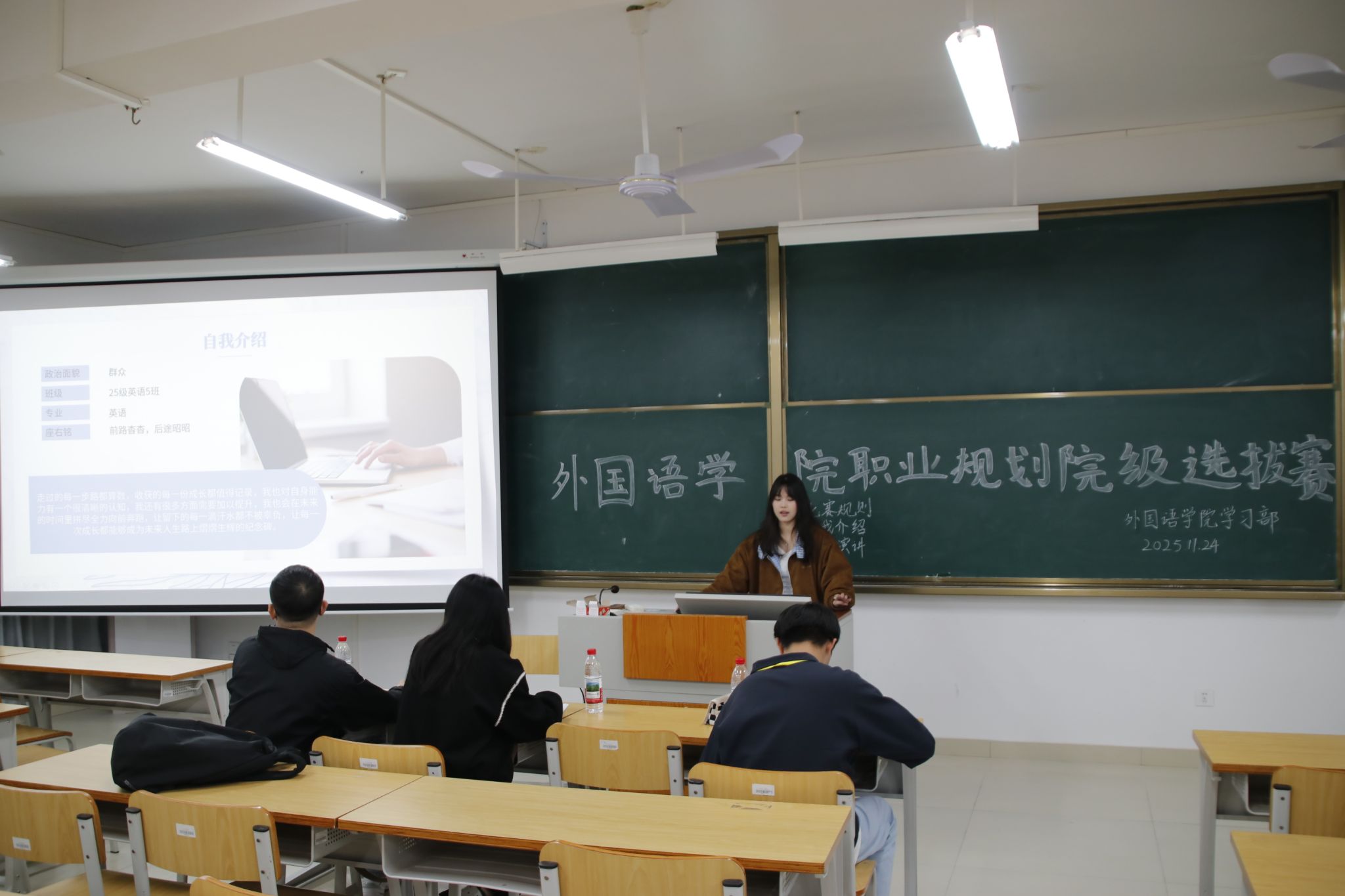 11月24日晚,外国语学院在实验楼2C-603教室顺利举办了职业规划大赛院级选拔赛。此次选拔赛由学工办张新举老师以及王倩老师担任评委,院团委学生会学习部工作人员负责计分工作。