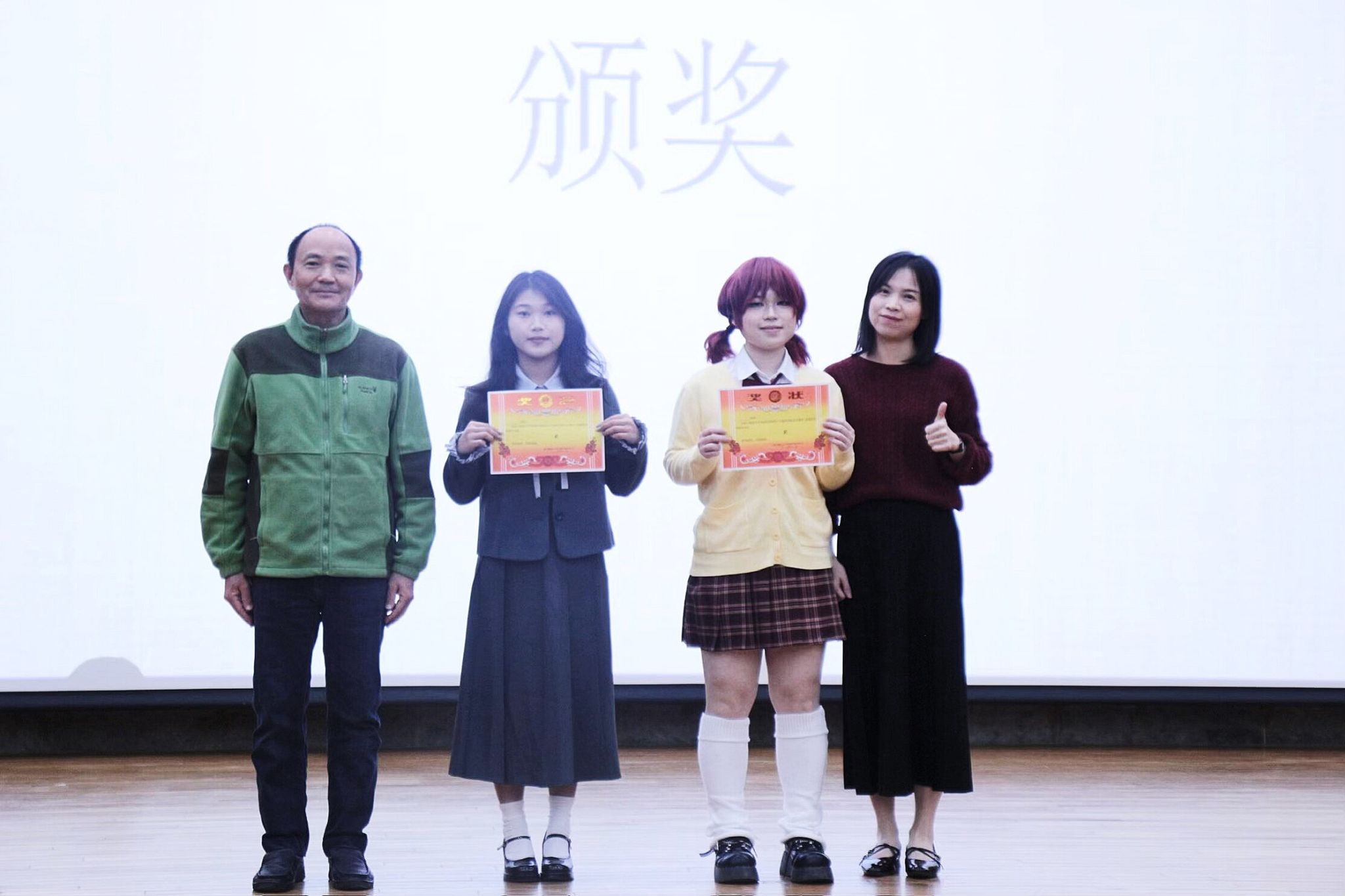 11月11日,初赛在武一教学楼的121教室顺利开展。经过外国语学院4名评委(英语、日语各2名)的严格评审,多支优秀队伍脱颖而出晋级决赛。11月25日,决赛在武鸣校区图书馆报告厅隆重举行,外国语学院党委刘晖晖副书记、评委唐旭光、刘婷婷、朱岚晖、林莉丽老师、学工办蔡梓晴、邓梦芸、黄慧梅、黄恬、王倩老师及学生会成员莅临现场指导。决赛中,选手们默契配合,精准把握角色语气与情感,中英、中日双语字幕的呈现让现场观众沉浸式感受语言与艺术的融合之美,精彩表现赢得阵阵掌声。