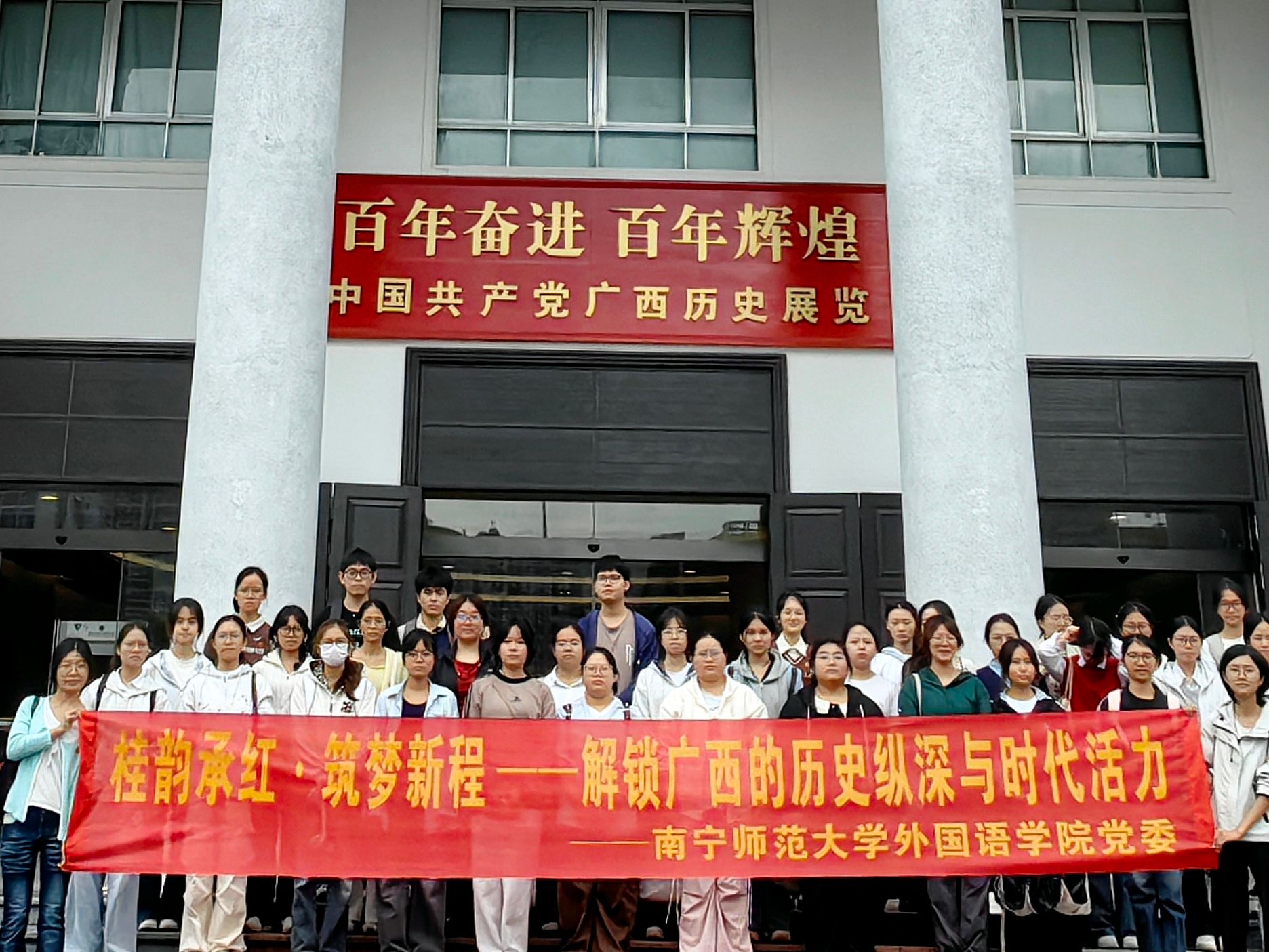 为深化对党的百年征程与广西发展史诗的认知,外国语学院党委组织第67期入党积极分子于11月9日上午赴广西展览馆开展“桂韵承红·筑梦新程——解锁广西的历史纵深与时代活力”主题实践活动。本次活动共有28名入党积极分子参与。