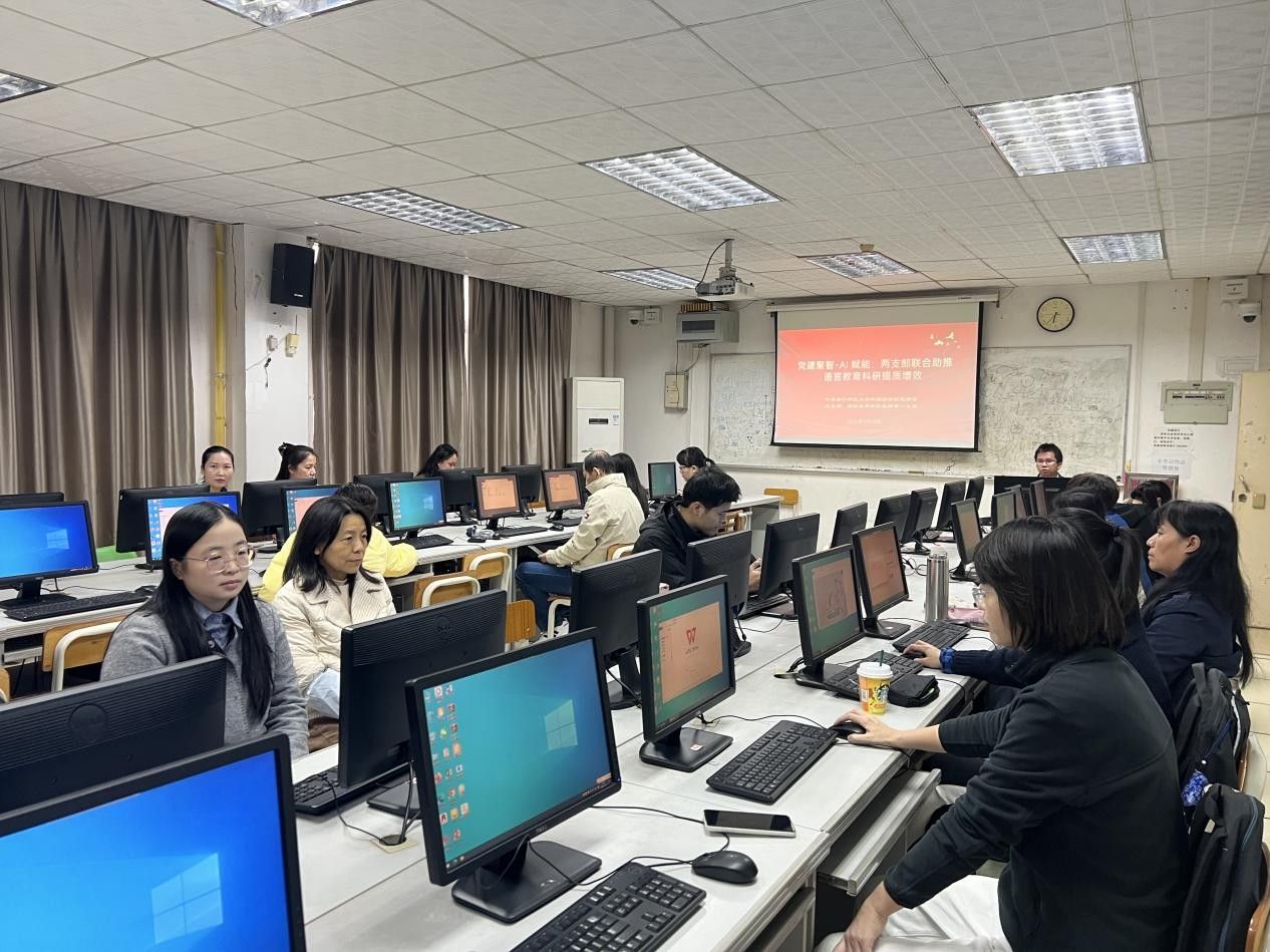 为深入推进党建与业务工作深度融合,着力破解语言教育科研中“技术应用难、资源整合散”的现实难题,11月18日下午,外国语学院教工第三党支部与国际教育学院教工第一党支部在南宁师范大学明秀校区文星楼905机房联合开展“党建聚智·AI赋能:联合助推语言教育科研提质增效”主题党日活动。活动特邀我校人工智能学院覃开贤副教授进行专题讲授与实操指导,两个支部的全体党员及学院其他教师共同参与。