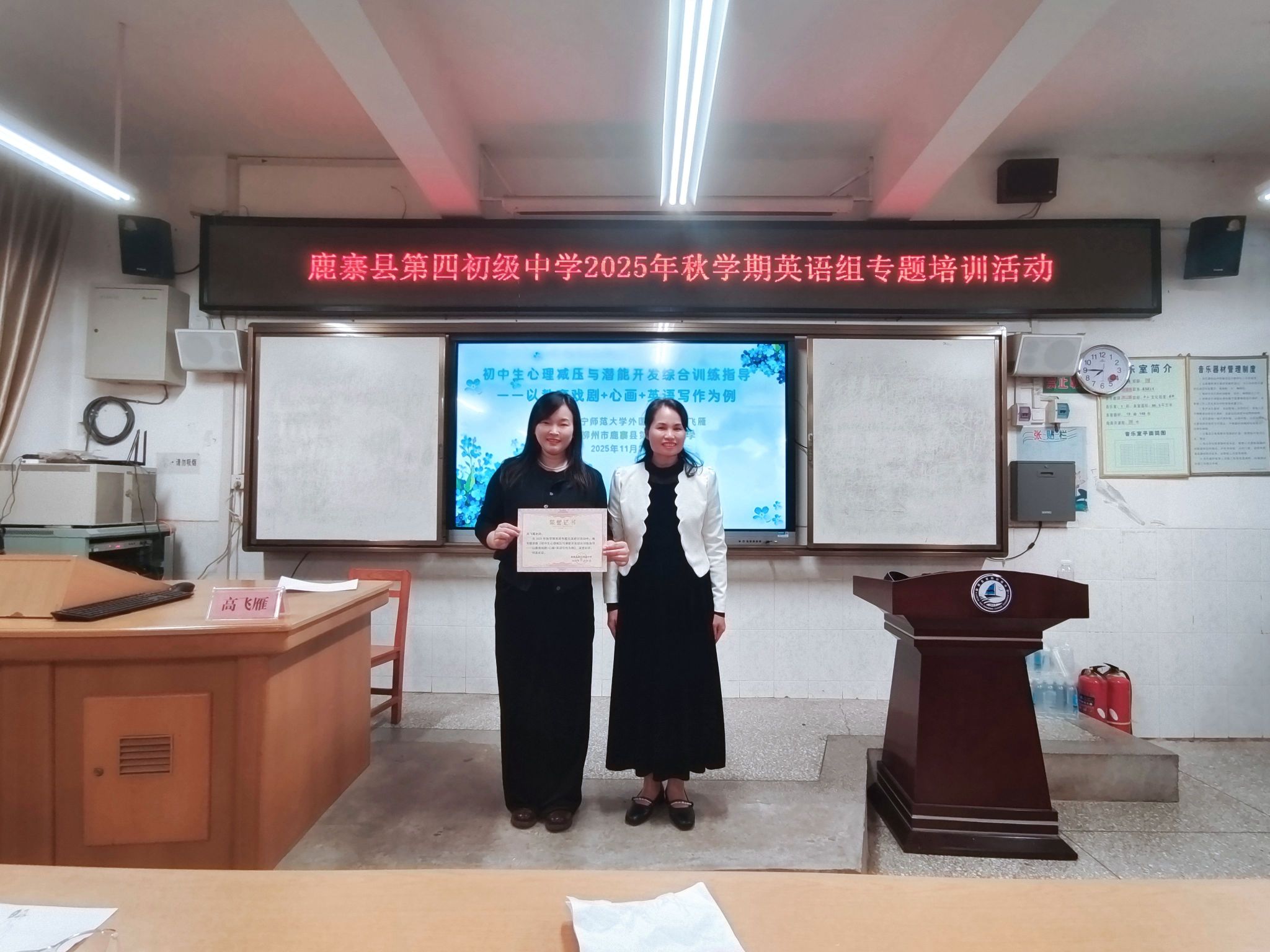 为拓宽毕业生就业渠道、深化校校合作育人,近日,外国语学院副院长高飞雁前往鹿寨县第四初级中学,开展教师专业培训及访校拓岗活动。该校校长梁梅、英语组全体教师、集团校部分英语教师以及相关行政负责人热情接待并全程参与。