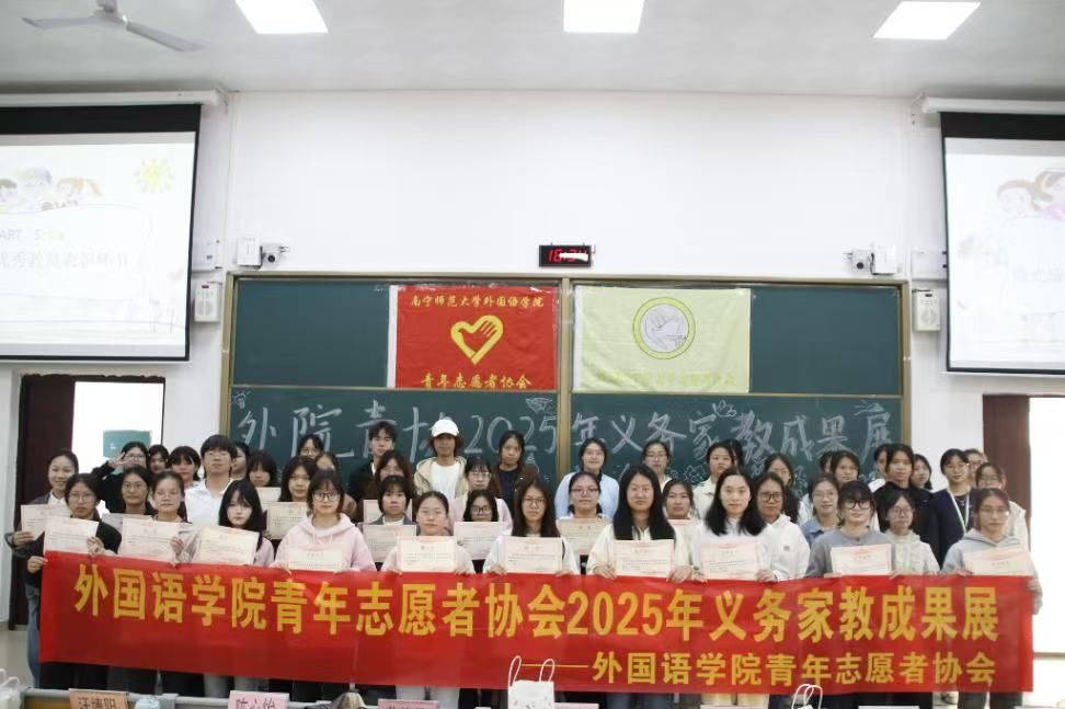 为总结义务家教志愿服务成果,传递志愿温暖、坚守育人初心,12月9日,外国语学院青年志愿者协会顺利举办2025年义务家教成果展。活动通过成果分享、温情回顾、表彰先进等环节,充分展现了义务家教活动的丰硕成果与志愿精神的传承力量。
