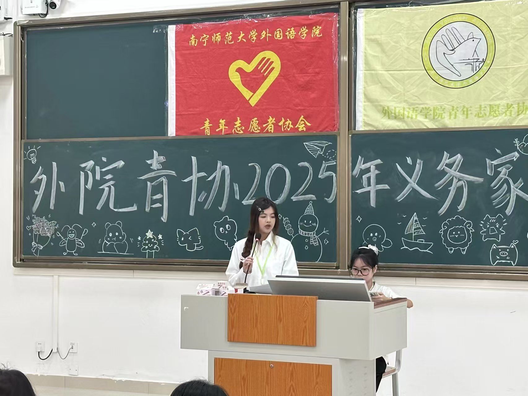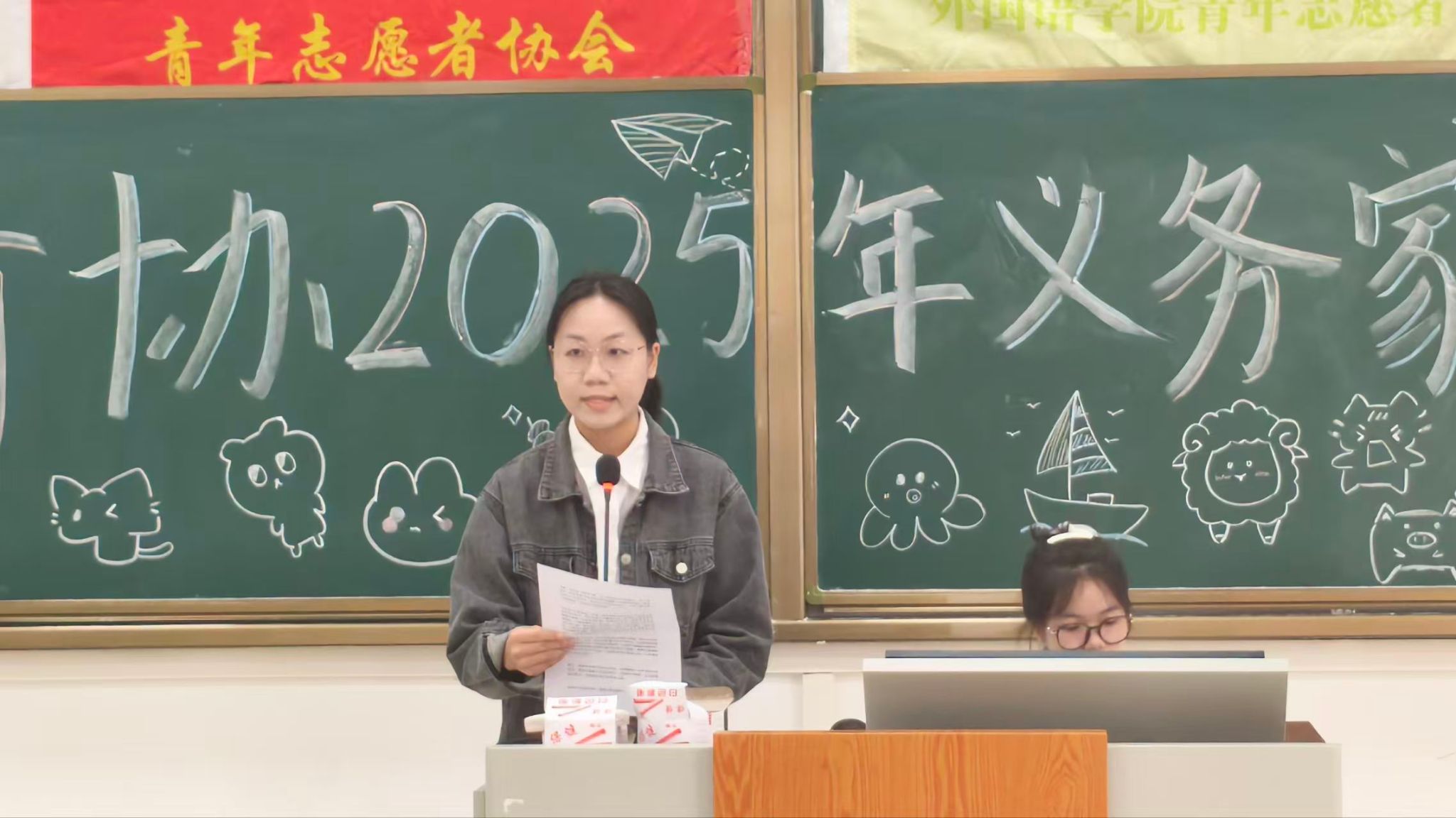 活动伊始,外国语学院青年志愿者协会校外辅导部部长麦梦琪介绍了义务家教的初心与发展历程,分享了志愿团队在助学过程中的点滴故事。随后进入温情瞬间回顾环节,通过视频展播,生动再现了志愿者们耐心辅导、与孩子互动交流的温馨画面,展现了家教过程中的暖心细节。