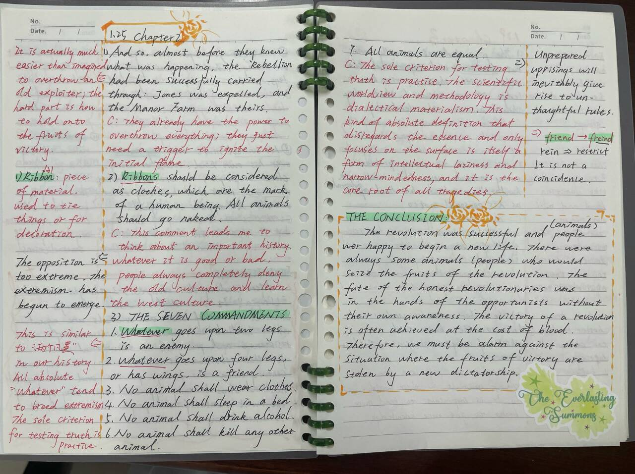 本次大赛以“书海撷珍萃,笔记著思章”为主题,历时近2个月,采用“线上打卡+线下评比”的结合形式,全方位展现外院学子热爱阅读、勤于思考、乐于积累的精神风貌。参赛作品内容丰富多元,覆盖中文、英语、日语等多种语言,不仅有经典名著的好词好句摘抄,也有深入独到的读后感想与点评。一份份字迹工整、排版精美的读书笔记,既承载着同学们沉浸式阅读的思考结晶,也彰显了外院学子严谨治学、笃学不倦的求学态度。